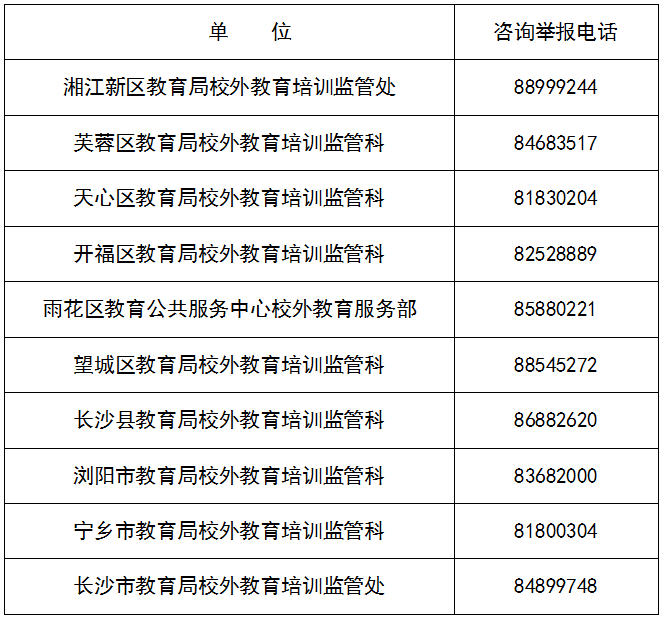 长沙市教育局提醒家长,凡是在周末、寒暑假、节假日开展义务教育学科培训的机构(个人)均为违规培训;凡是无办学许可证开展校外培训的机构均为违规培训机构。校外培训机构一次性不得收取超过三个月或60个课时的费用,非学科类培训机构一次性收费不得超过5000元。另外,家长一定要认准正规的缴费渠道——全国校外培训监管与服务平台的家长端APP,也可扫描“长沙一码通”二维码。