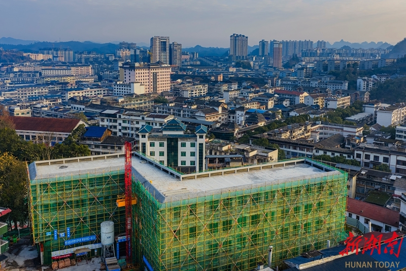 1月9日,通道侗族自治县第一完全小学综合楼建设项目主体施工已完成,进入室内外装修施工阶段。近年来,该县持续加大教育基础设施投入力度,加快推进校园改扩建工程,有效改善办学条件。石猛雷 摄(湖南图片库)
