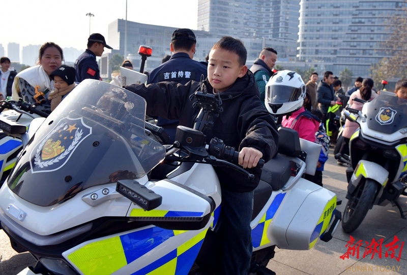 1月10日,吉首市“ 警彩吉首·平安共建”警营开放日暨岁末年初集中宣防活动现场,小朋友在体验驾驶警用摩托车。当天,各地举办形式多样的活动,庆祝第六个中国人民警察节。刘丹 姚方 摄影报道(湖南图片库)
