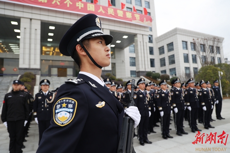 1月10日,洞口县公安局民警在参加升警旗仪式。当天,各地举办形式多样的活动,庆祝第六个中国人民警察节。刘金汉 摄(湖南图片库)
