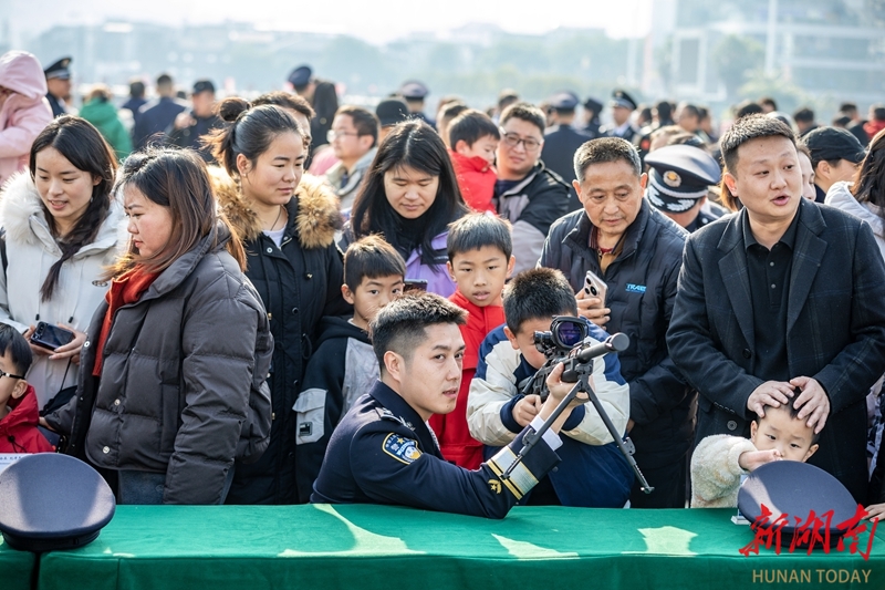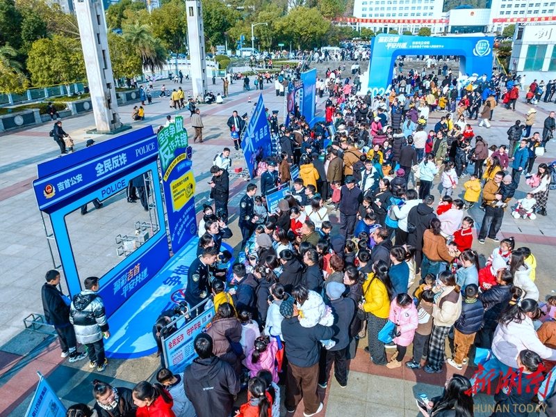1月10日,吉首市“ 警彩吉首·平安共建”警营开放日暨岁末年初集中宣防活动现场,民警向市民普及法律法规知识。当天,各地举办形式多样的活动,庆祝第六个中国人民警察节。彭璟 摄(湖南图片库)