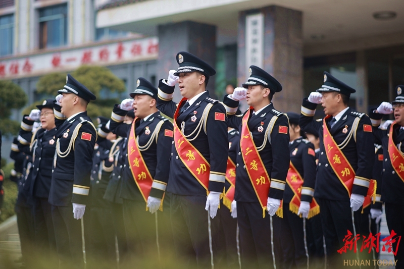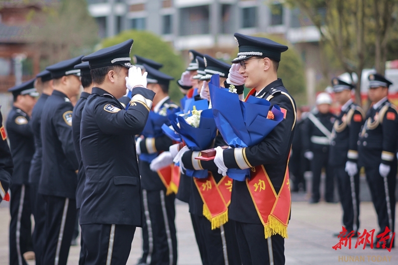 1月10日,通道侗族自治县公安局举行升警旗仪式暨表彰活动,对立功受奖的先进民辅警代表进行集中表彰。当天,各地举办形式多样的活动,庆祝第六个中国人民警察节。 李尚引 石昕鑫 摄影报道(湖南图片库)