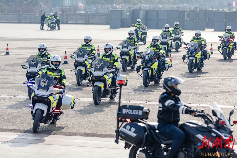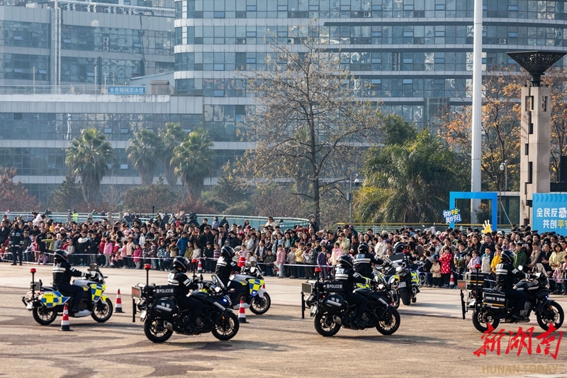 1月10日,吉首市“ 警彩吉首·平安共建”警营开放日暨岁末年初集中宣防活动现场,骑警进行摩托车技能展示。当天,各地举办形式多样的活动,庆祝第六个中国人民警察节。彭璟 摄(湖南图片库)