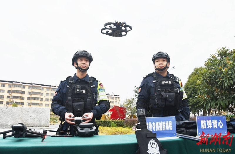 1月10日,江永县公安局民警在展示警务装备。当天,各地举办形式多样的活动,庆祝第六个中国人民警察节。田如瑞 摄(湖南图片库)