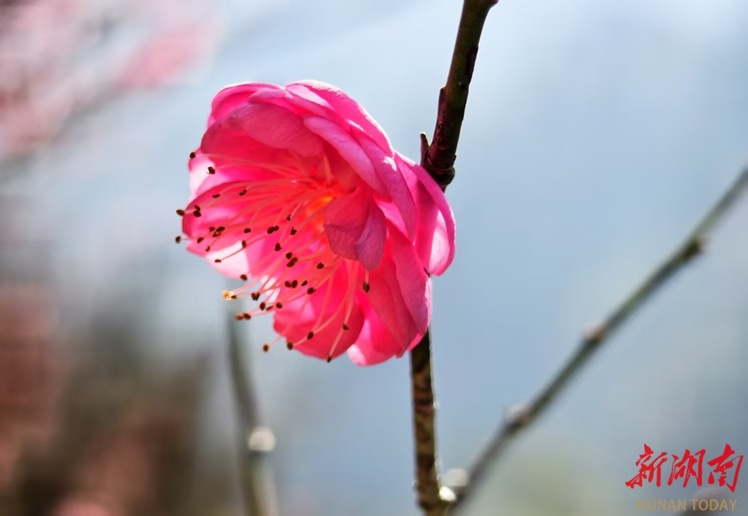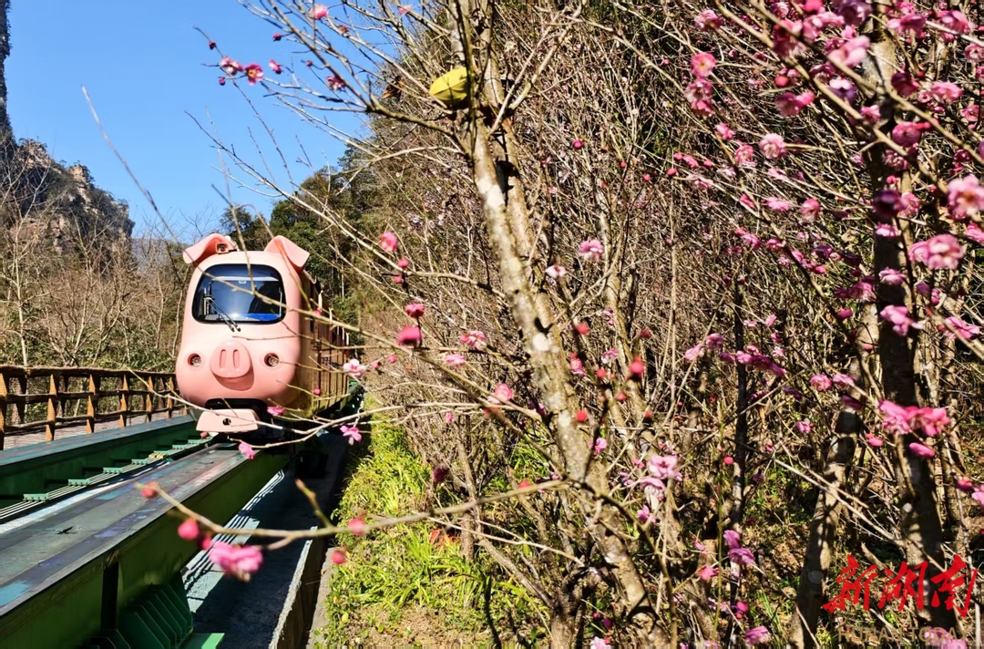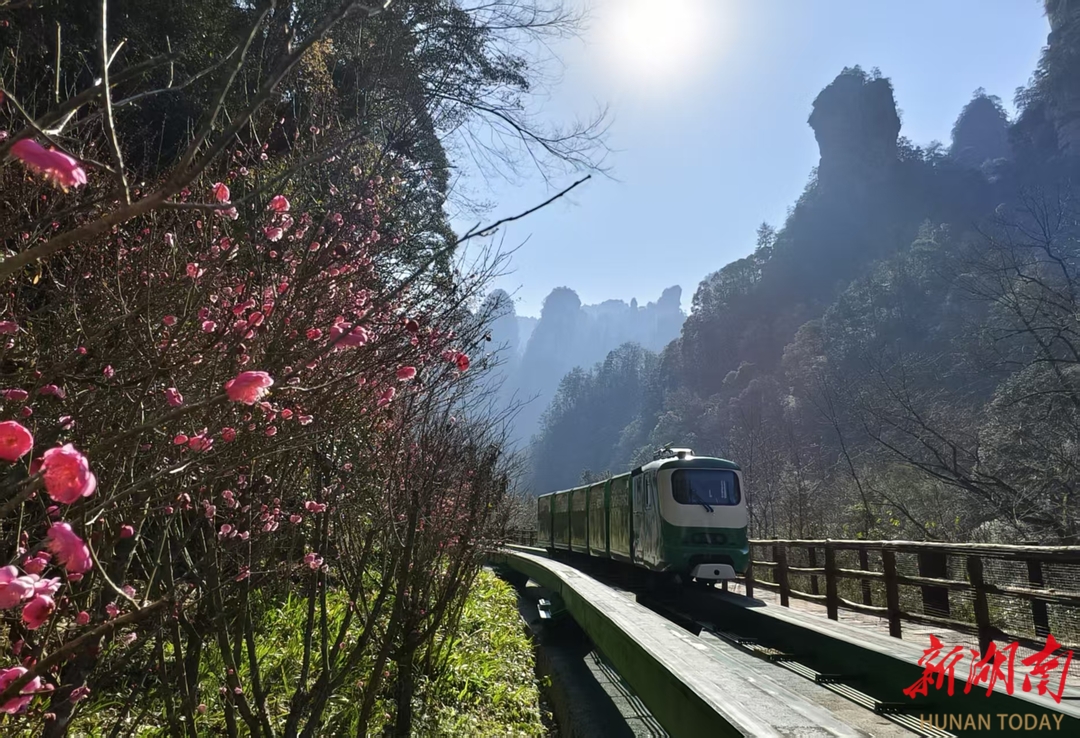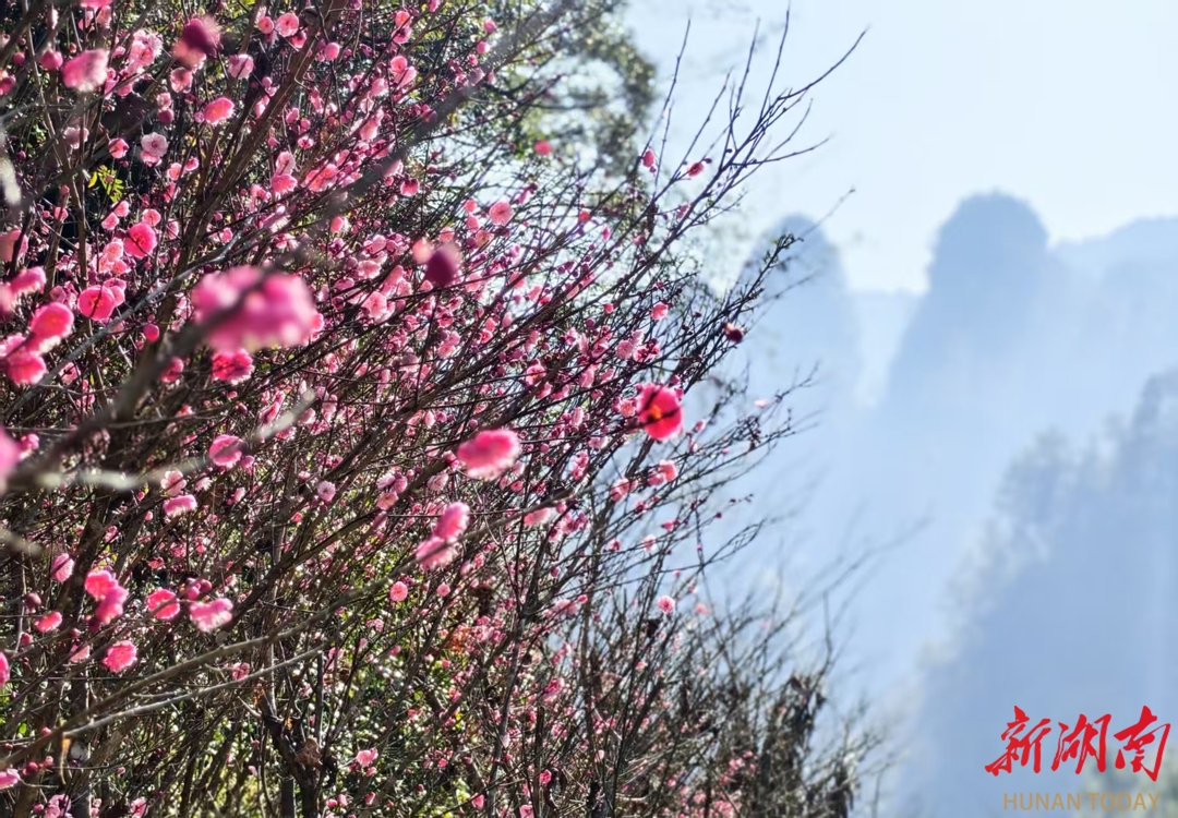 1月11日,随着气温回升,张家界国家森林公园十里画廊梅花竞相盛开,点缀着山峦峰林间,美不胜收,吸引各地游客开启赏花之旅。吴勇兵