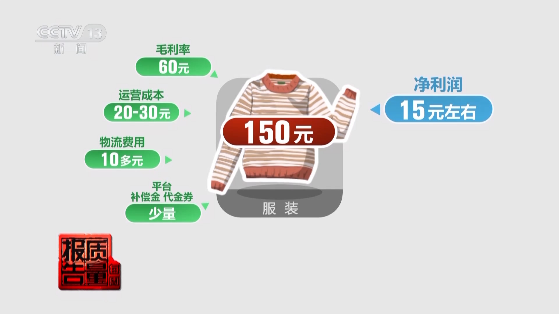 以一件定价150元的服装为例,单件毛利率为60元,其中还要支出20至30元的运营成本、十余元的物流费用,以及少量平台补偿金、代金券,最终单件净利润仅在15元左右。一旦遭遇退货,多次销售产生的重复运费会抵消剩余利润。