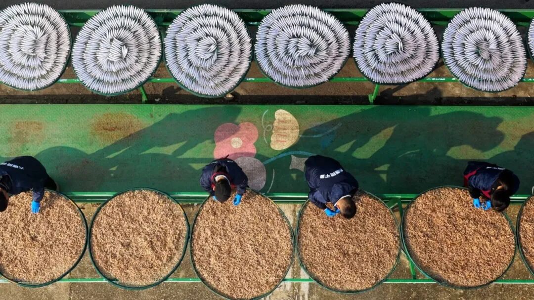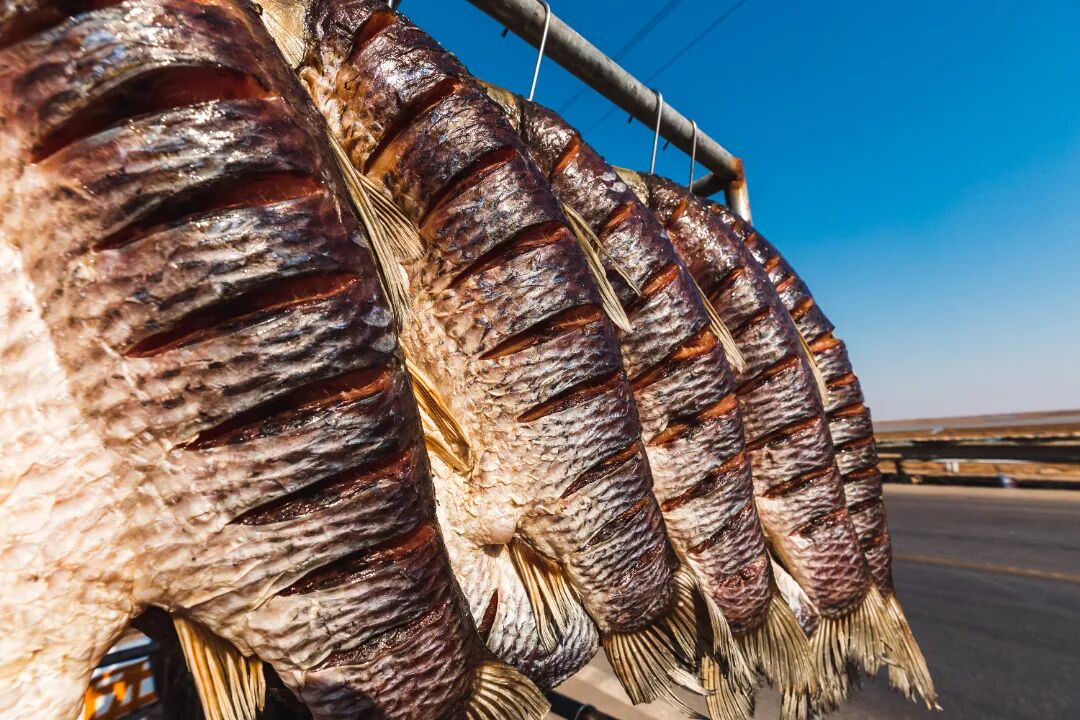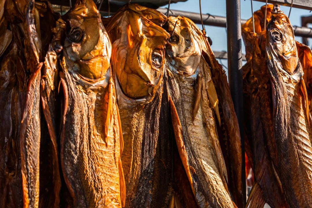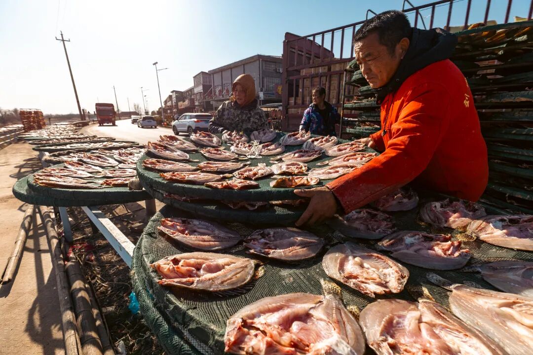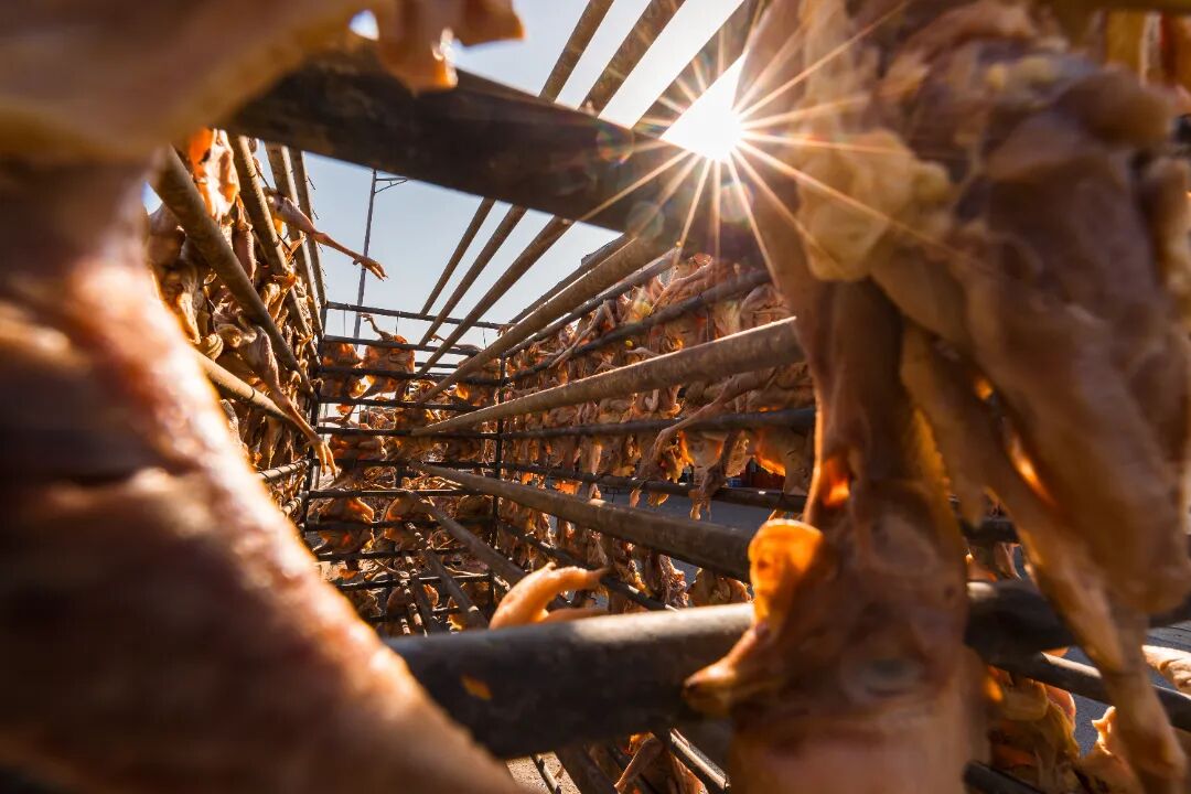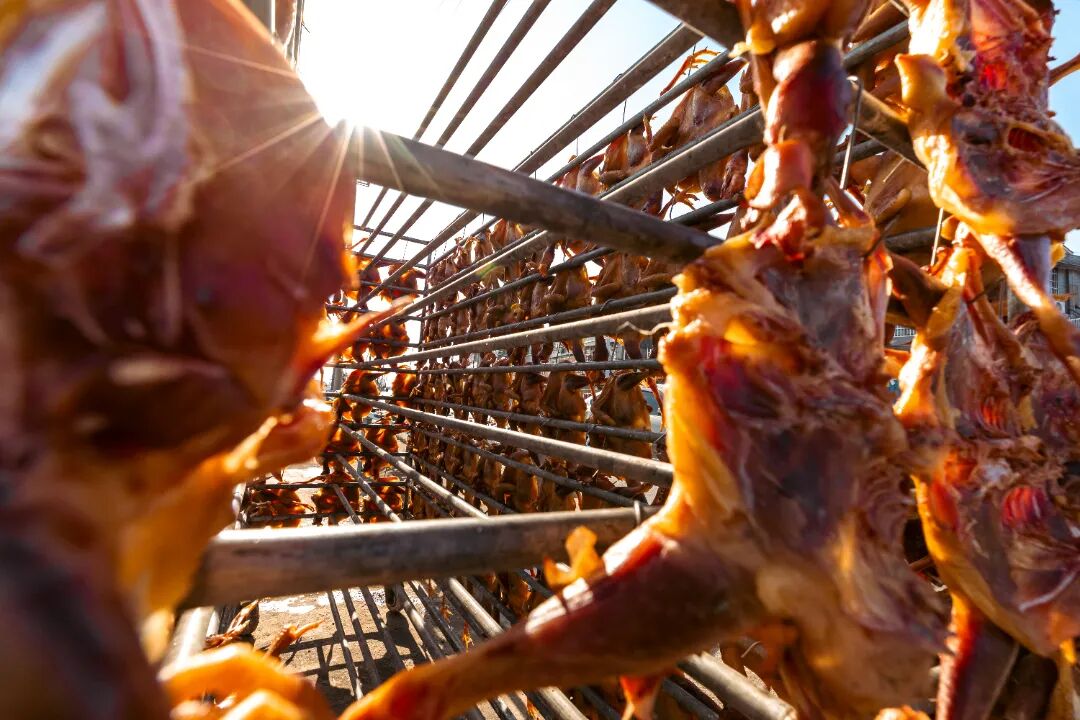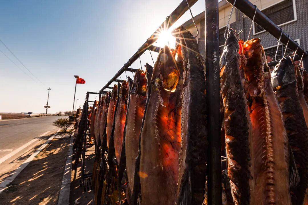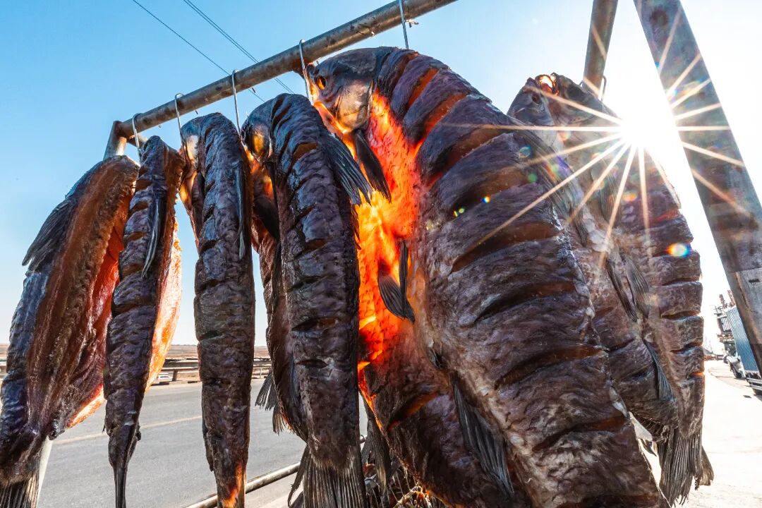 ▲六门闸风干鱼沐光待成味。朱俊屹 摄