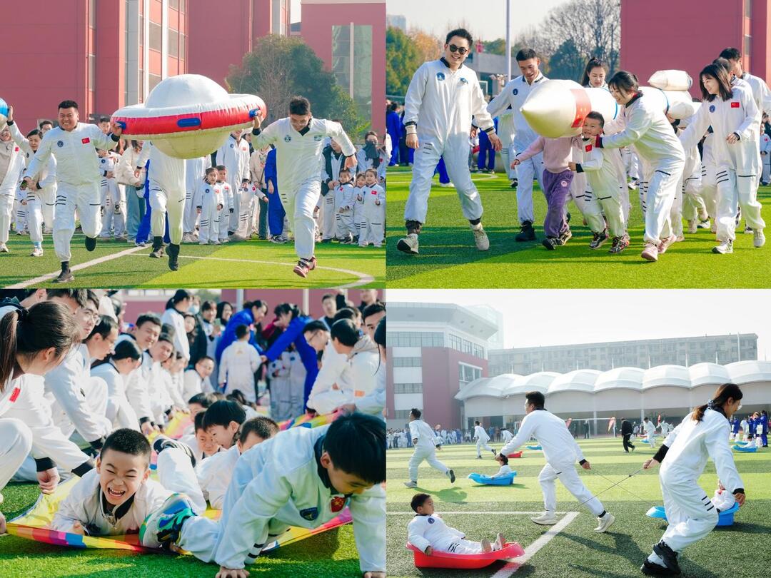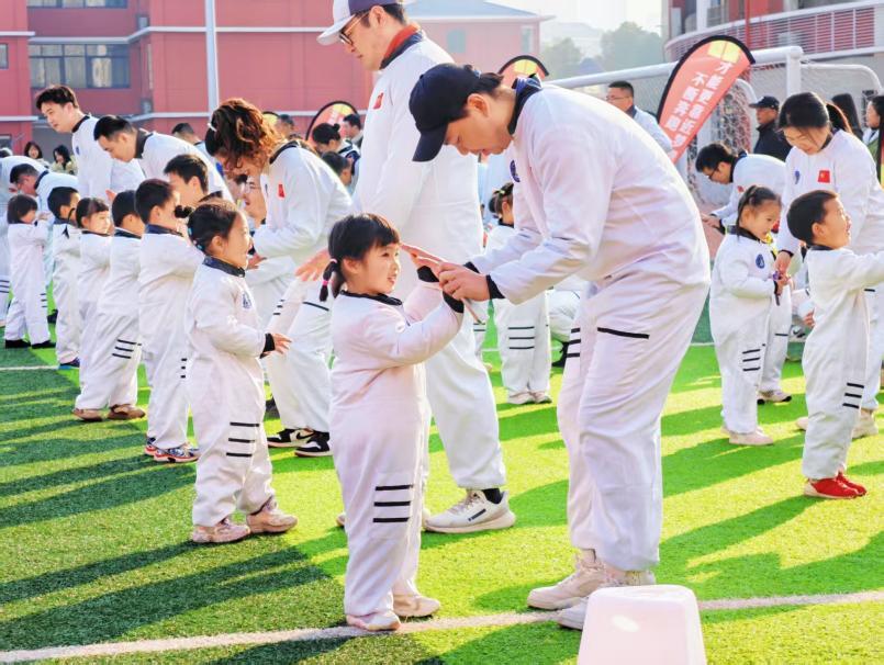 活动设置“太空漫步”“火箭发射”“星球搬运”等多项航天主题亲子项目。家长与孩子在协作闯关中锻炼意志、增进情感,现场气氛热烈。活动中,幼儿园还为“五好娃娃”颁发奖项,鼓励幼儿全面发展。
