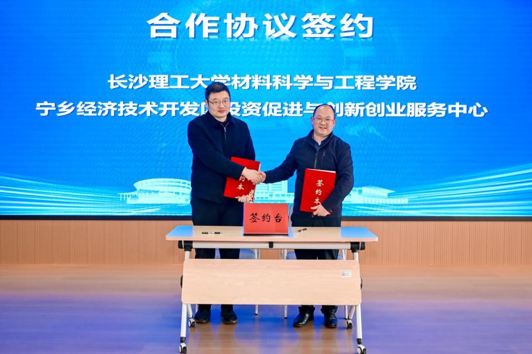 长沙理工大学材料科学与工程学院与宁乡经济技术开发区投资促进与创业服务中心签署合作协议,进一步拓展校地协同创新空间,为科技成果转化和产业协同发展注入新动能。
