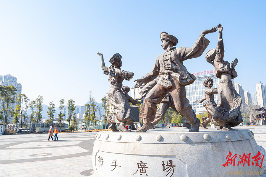 1月11日,吉首市吉凤街道湾溪社区湘西民族文化园,市民在游玩。当天,当地气温持续回暖,市民纷纷走出户外游玩,享受冬日暖阳与周末时光。 梁永鸿 摄(湖南图片库)