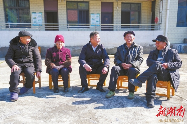 1月5日,张家界市永定区谢家垭乡敬老院,田卫(中)与老人们交谈,询问他们的身体与生活状况。向韬 摄(湖南图片库)