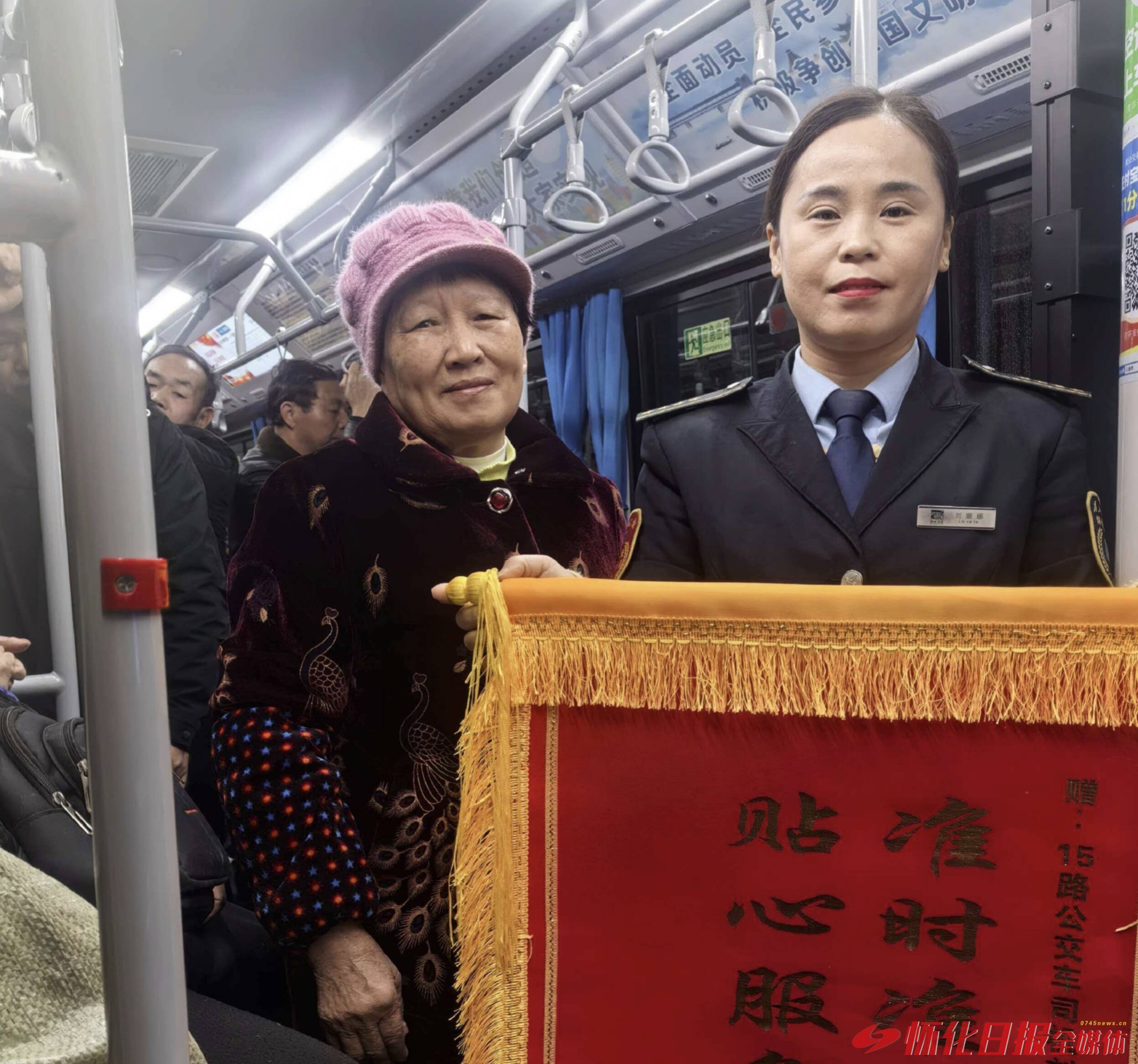 “小刘,这个是专门给你的!”1月8日清晨,怀化15路公交车刚停靠芷江西路教堂站,60多岁的老乘客杨喜英大妈便满脸笑意地登车,将一件物品“递”到驾驶员刘娜娜手中。