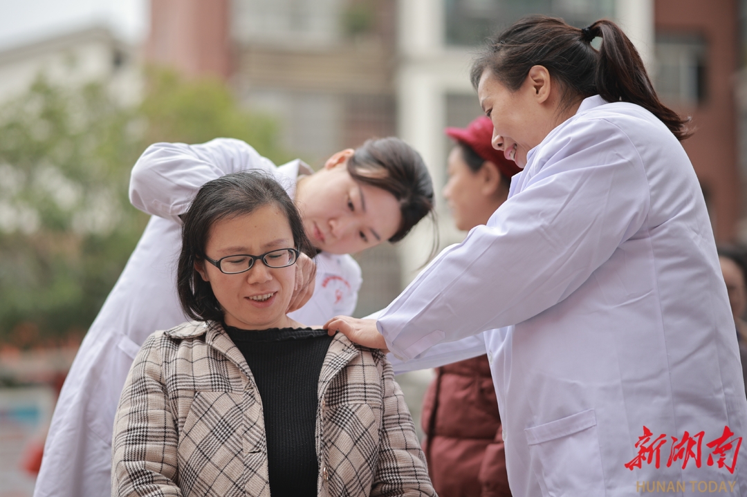 1月10日,通道侗族自治县双江镇锦绣新城小区,妇幼保健医生正为居民开展义诊服务。近期,通道卫健部门组织辖区内各医院组建流动医疗服务队,深入社区、村寨开展免费义诊活动,将贴心的健康服务送到居民家门口。(李尚引 谢文娟 摄)