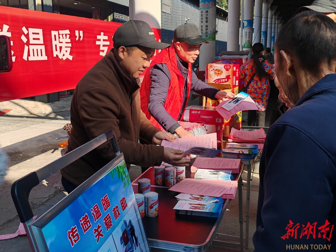 湖南日报·新湖南客户端1月12日讯(通讯员 袁友光 陈莉莉)“如果您发现露宿街头、流浪儿童、精神智障患者走失等各类临时遇困人员,请拨打县救助站电话。”1月9日,中方县救助管理站联合县志愿者协会、县民政社工站在铁坡镇集市开展“寒冬送温暖”专项救助行动主题宣传活动。活动中,工作人员向群众发放宣传资料和救助物资,详细介绍救助政策、求助热线及救助地点,引导群众积极参与救助工作。