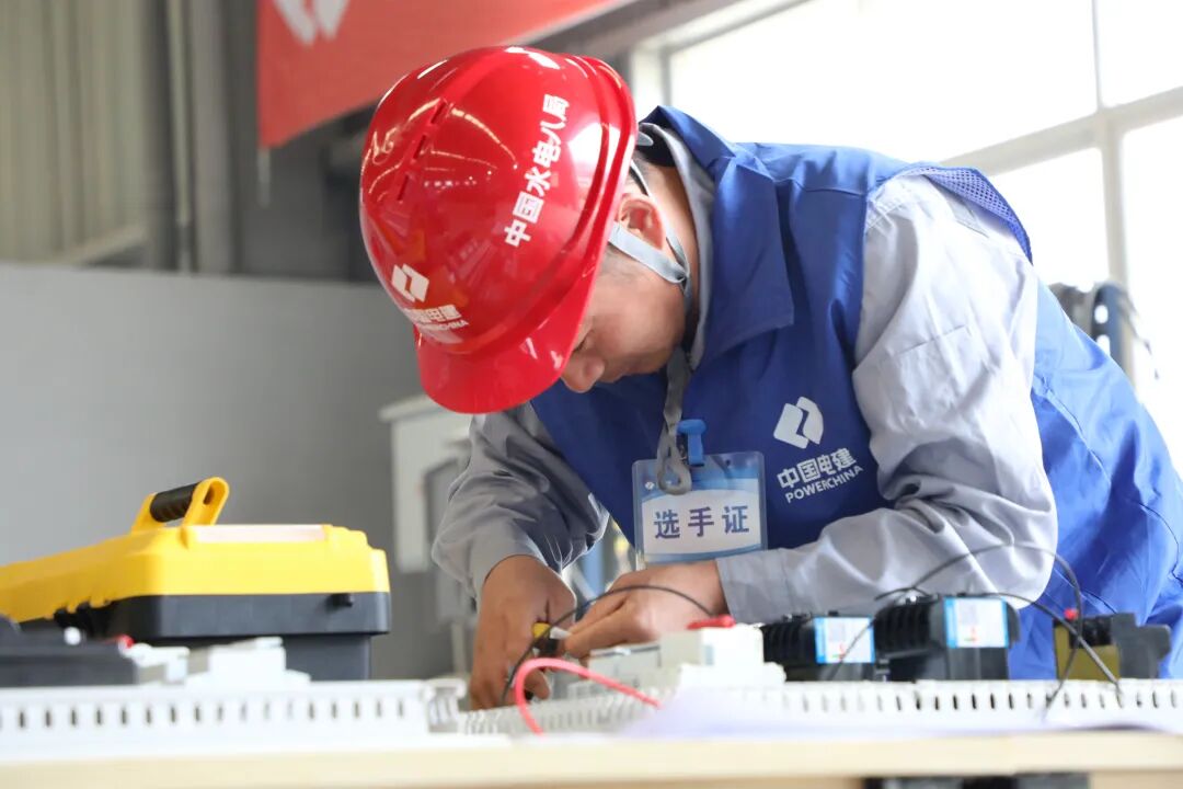 水电八局技能大赛上,电气组选手迅速完成设计任务,沉着冷静操作拆线接线、剥线压线、封盖紧固、电路检测等,顺利完成线路调试。