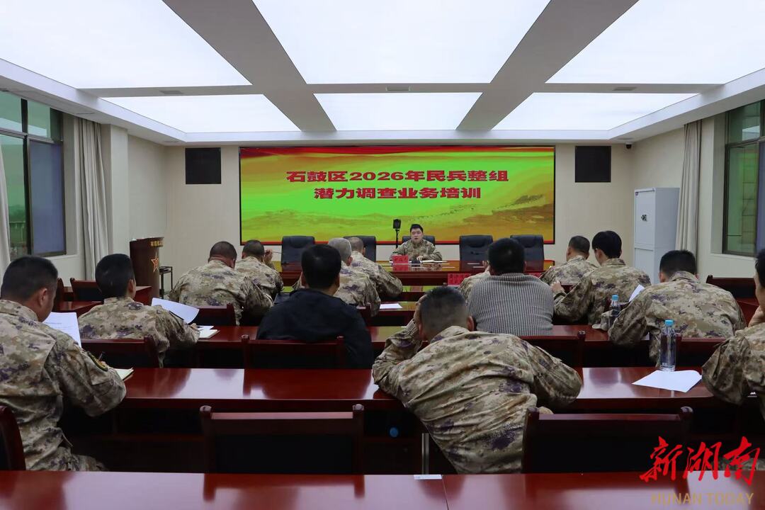 湖南日报·新湖南客户端1月12日讯(通讯员 李霞 谭伊玲)为精准掌握辖区国防动员潜力底数,高标准推进2026年度民兵组织整顿工作,近日,衡阳市石鼓区人武部组织开展民兵整组潜力调查业务培训,全区各镇(街)、各高校专武干部20余人参训。