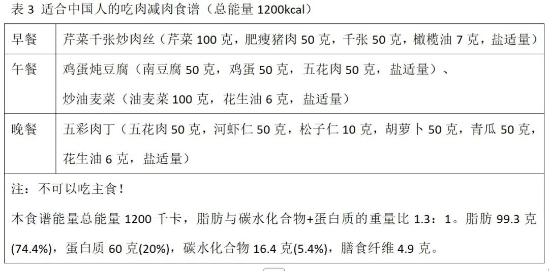 表3 适合中国人的吃肉减肉食谱(总能量1200kcal)