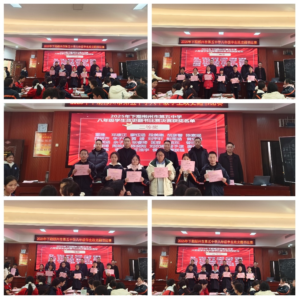 新湖南客户端1月12日讯(通讯员 陈芬)政史课本里藏着古今中外的智慧,开卷考试中藏着快速检索的秘诀!为响应新课标核心素养培育要求,落实“双减”减负提质导向,郴州市第五中学八年级开展了历时2天的学生政史翻书比赛。本次比赛以“以赛促学强基础,书香政史润初心”为主题,旨在激发大家对道德与法治、历史学科的学习兴趣,锤炼快速翻书检索、知识整合应用的硬核能力,争取在团队协作中收获友谊与成长,营造“比学赶超”的浓厚校园学习氛围。