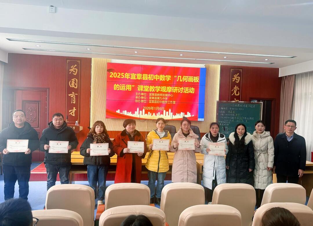 新湖南客户端1月12日讯(通讯员 彭丽燕 肖海萍)近日,宜章县初中数学“几何画板的运用”课堂教学观摩研讨活动在宜章县第九中学顺利举行。本次活动由宜章县教师发展中心主办,宜章县第九中学与宜章县初中数学学科工作室共同协办,吸引了全县各初中数学教师代表及学科工作室全体成员积极参与。