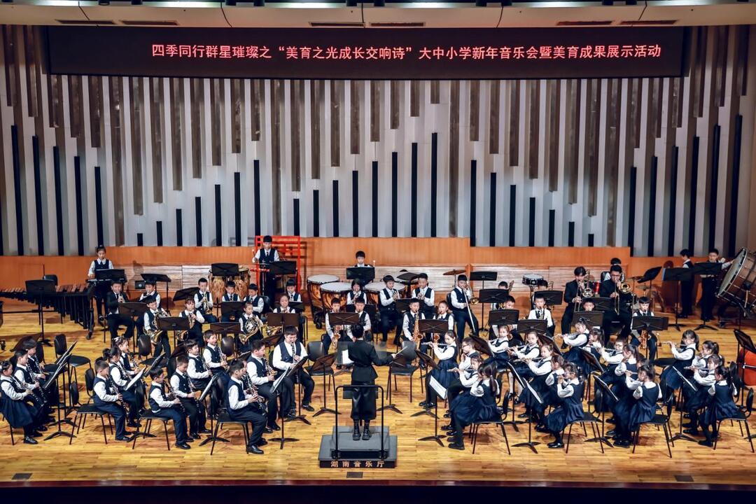 与此同时,湖南音乐厅“美育之光·成长交响诗”美育成果展演现场,“奇妙少年”管弦乐团的演出震撼全场。乐团先后呈现《苏醒·闹海》《铳之战》等兼具叙事张力与技术难度的作品,精湛演技令人赞叹;在《木乃伊的巡游》与《哪吒》的创意融合演奏中,实现中西音乐文化的精彩碰撞,独特的艺术表达收获满堂掌声。