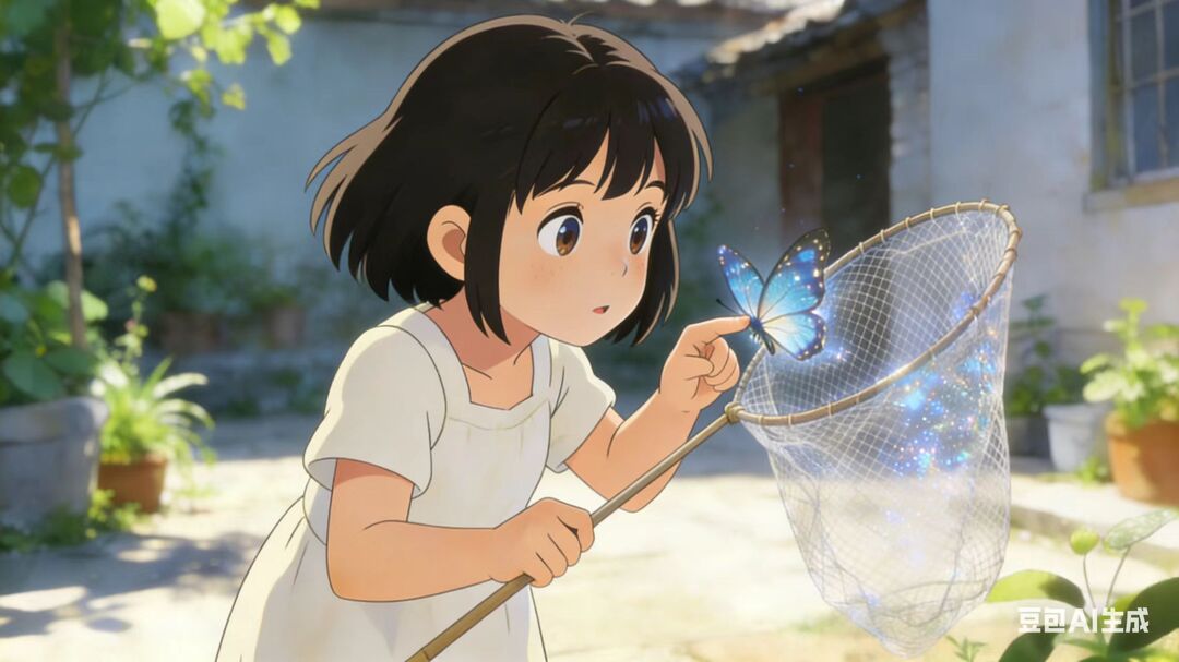 于是,我搬了把椅子,坐到院子门口。我就一直等啊等,终于,一只深蓝色的蝴蝶从树叶间冒出来。我又兴奋起来,那只蝴蝶飞到一朵花上面,似乎是在采蜜。我小心翼翼地拿上网子,悄悄地靠近它,“呼”的一声,我把网子扣了下来,捉住了它。我慢慢地把网子打开,把蝴蝶的翅膀捏起来,放到我的手指上,我仔细地观察着它,它好像并不怕我,它的翅膀在阳光下闪着蓝光,好像洒了一层亮片一样,美丽极了!它转了过来,用那双伶俐的眼睛可怜地望着我,似乎是在求我放它走。