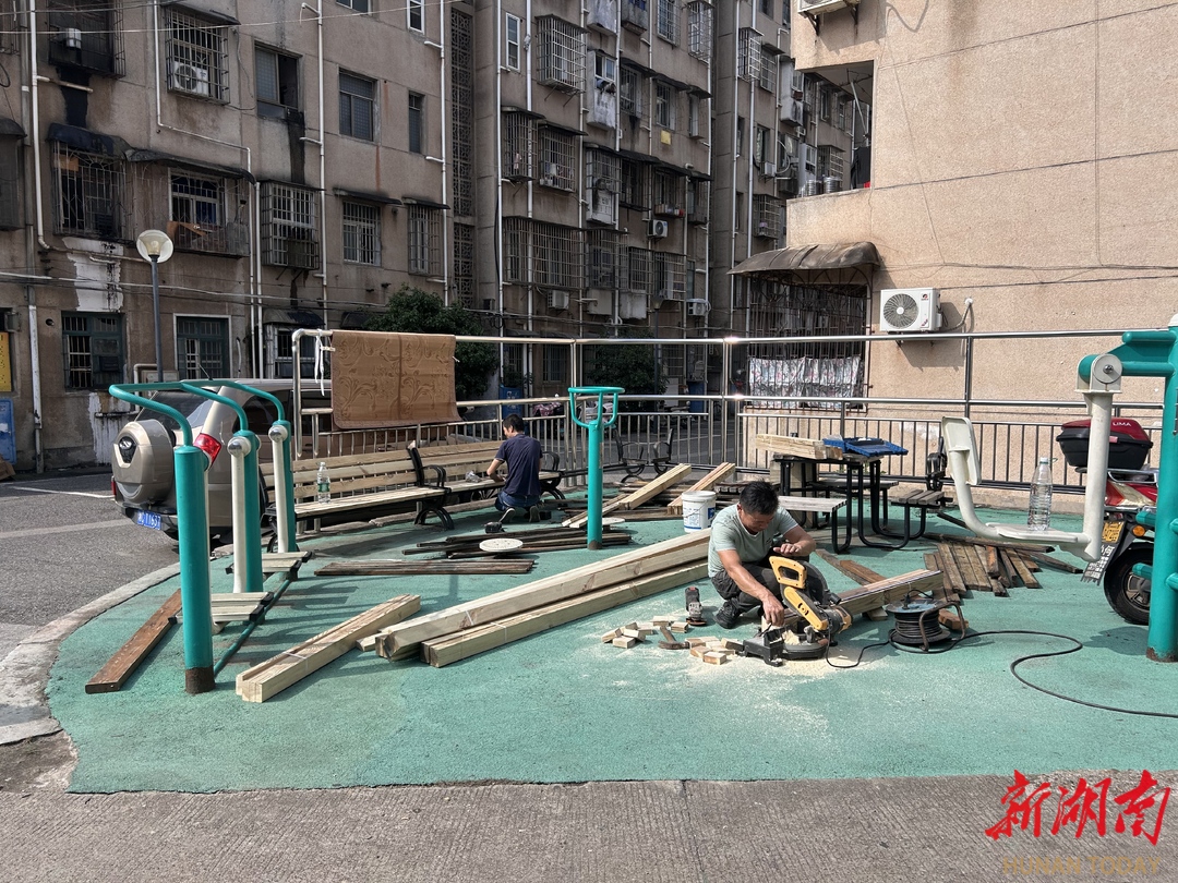 湘潭市岳塘区金耐社区针对居民提出的建议,解决休闲座椅老化、停车棚杂乱等民生事项