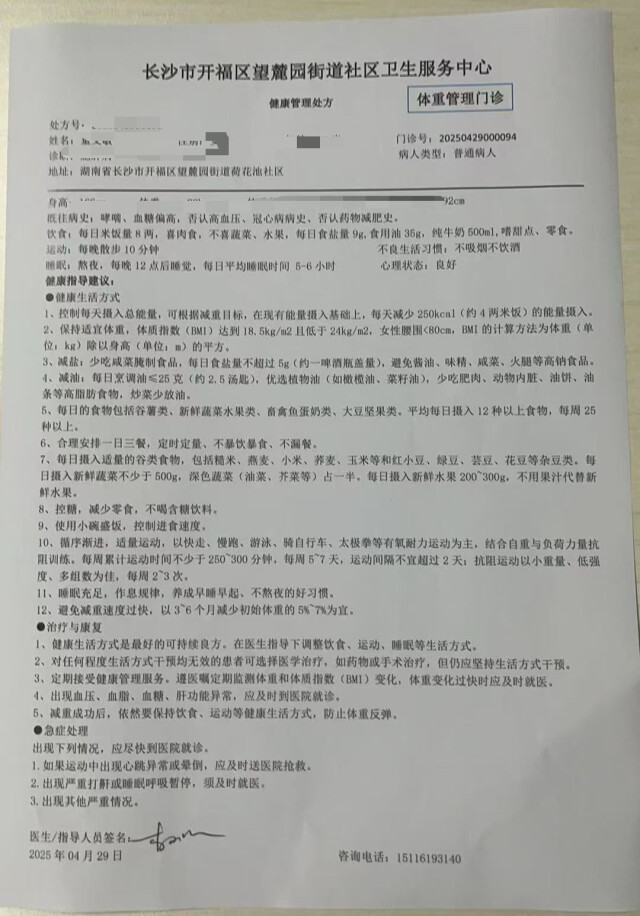 “出院时,医生给母亲开了治疗处方和健康教育处方,对用药和生活都有很详细的指导意见。”刘女士告诉记者,有了健康教育处方,母亲回家后也能照着处方上的建议去做,让自己放心不少。