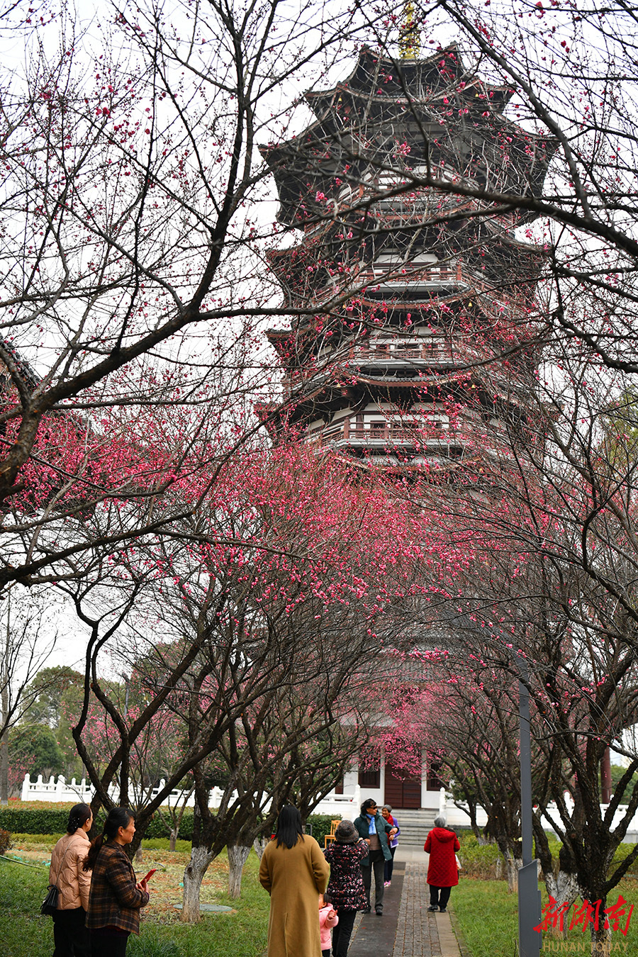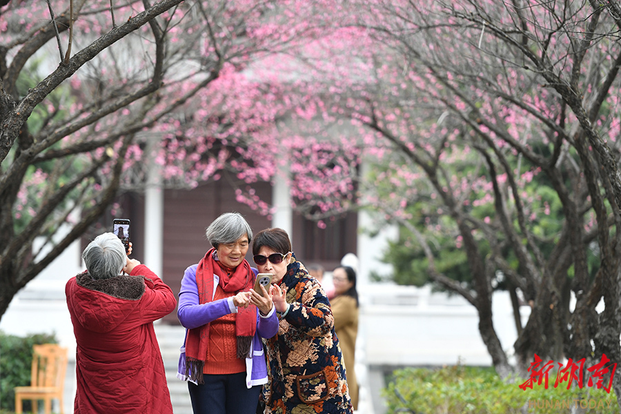 1月12日,长沙洋湖国家湿地公园,游客在白鹭塔边游园赏梅花。该公园拥有梅花300余株,主要以宫粉梅、朱砂梅和绿萼梅为主,目前花期已至,预计可持续至2月中旬。 湖南日报全媒体记者 田超 摄