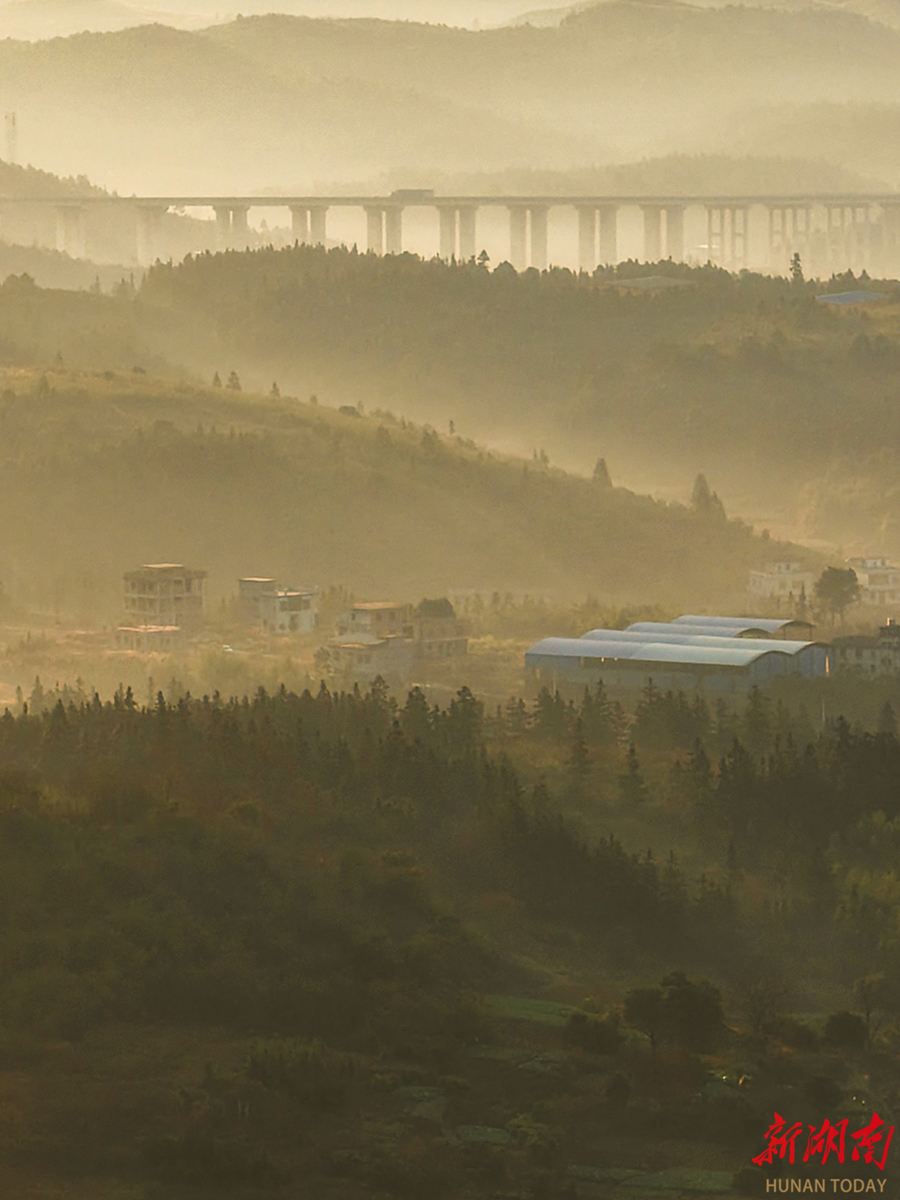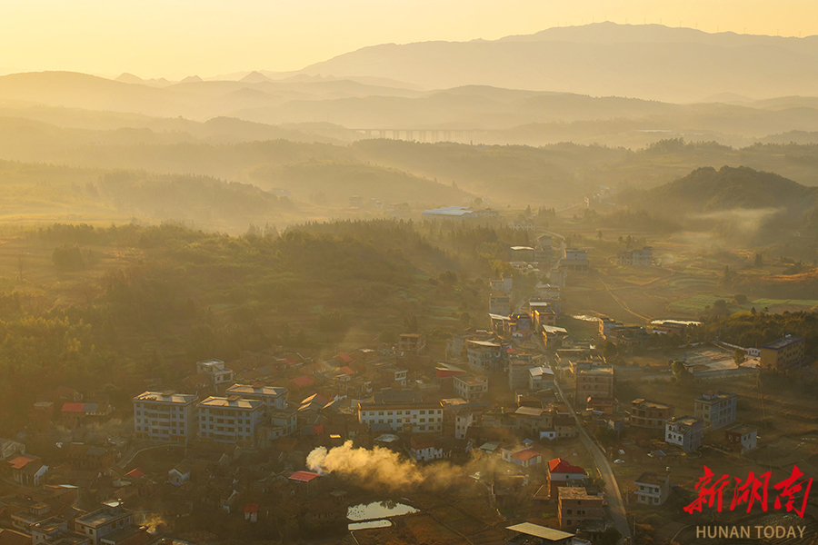 1月12日,嘉禾县龙潭镇,山乡间轻雾缥缈,如薄纱般缭绕,将田野、村舍勾勒成一幅诗意盎然的水墨丹青。黄春涛 摄(湖南图片库)