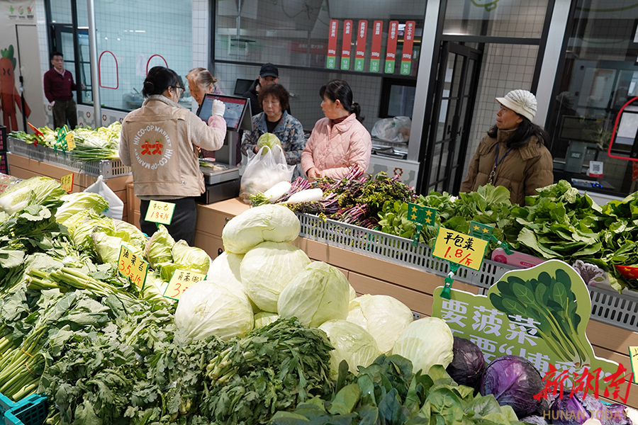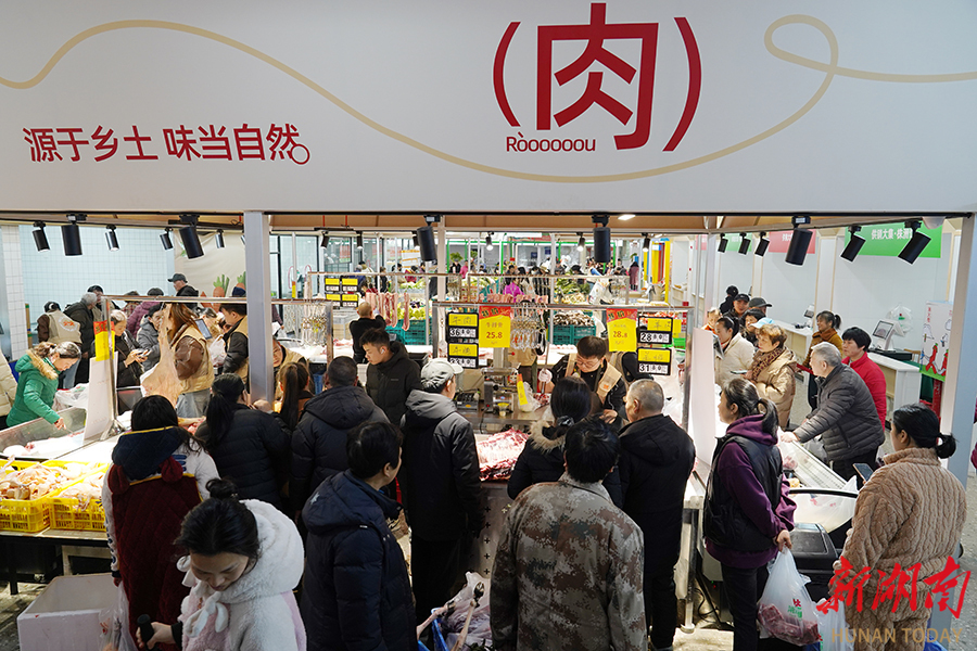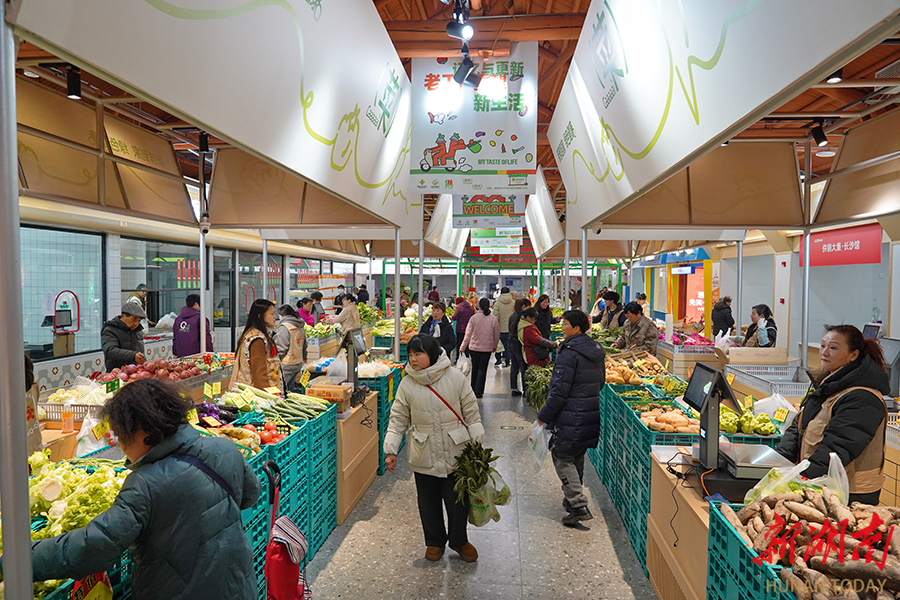 1月12日,长沙市开福区油铺街,市民在湘供市集选购农副产品。这座由长沙弹簧厂老厂房改造的市集于1月10日正式开业,集社区生鲜、便民食堂、邻里服务于一体。市民不仅能在这买到肉、蛋、菜,还可通过手机下单生鲜等产品,预约社区医生,并享受免费配钥匙、缝补衣服等便民服务。湖南日报全媒体记者 徐行 摄