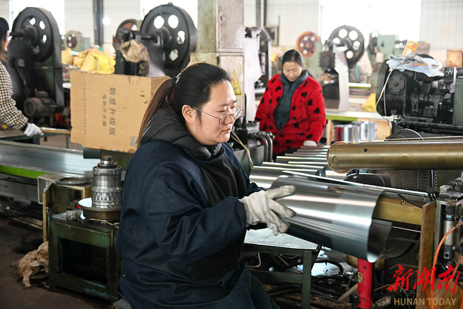 1月12日,澧县湖南万家工贸实业有限公司成品车间,工人在生产节煤炉具部件。新年伊始,该公司节能炉具生产进入旺季,企业开足马力加紧生产,确保产品供应,力促企业实现新年开门红。 柏依朴 摄(湖南图片库)