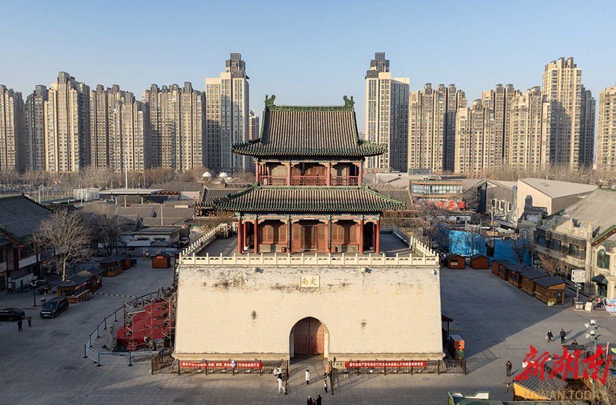 1月12日,古色古香的天津市南开区鼓楼。该楼是旧时天津“三宗宝”之一,位于天津老城中心,周围与国内外著名的古文化街、天后宫、吕祖堂等景点相辉映,富有浓郁的津城文化氛围。 湖南日报全媒体记者 李健 摄