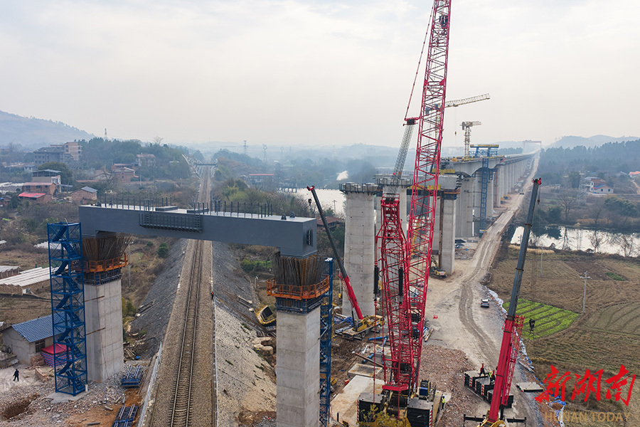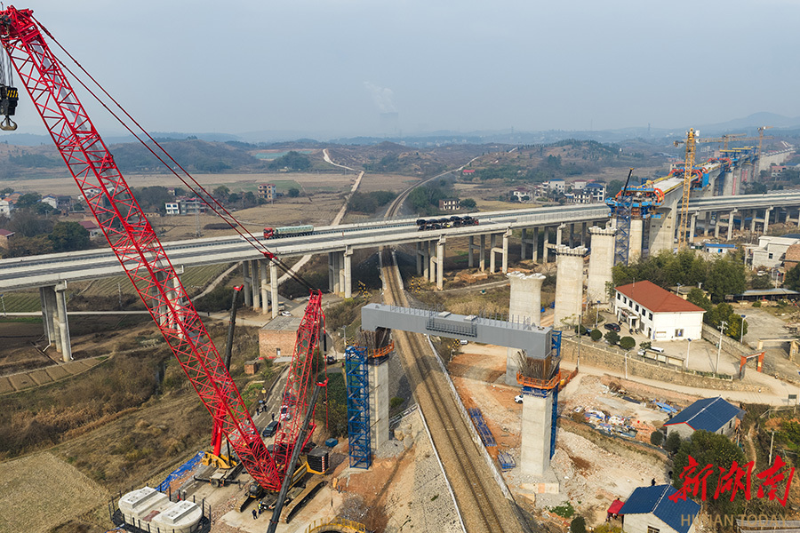 1月12日,位于永州市的邵(阳)永(州)高铁跨芦洪江特大桥跨益湛线钢盖梁顺利完成架设,为后续架梁施工奠定坚实基础。该项目由中铁二十五局承建,全长3050米,需跨越高速公路、铁路、省道及河流,是邵永高铁全线的重点难点工程之一,目前已完成90%主体施工。 雷中祥 蒋凌志 摄影报道(湖南图片库)