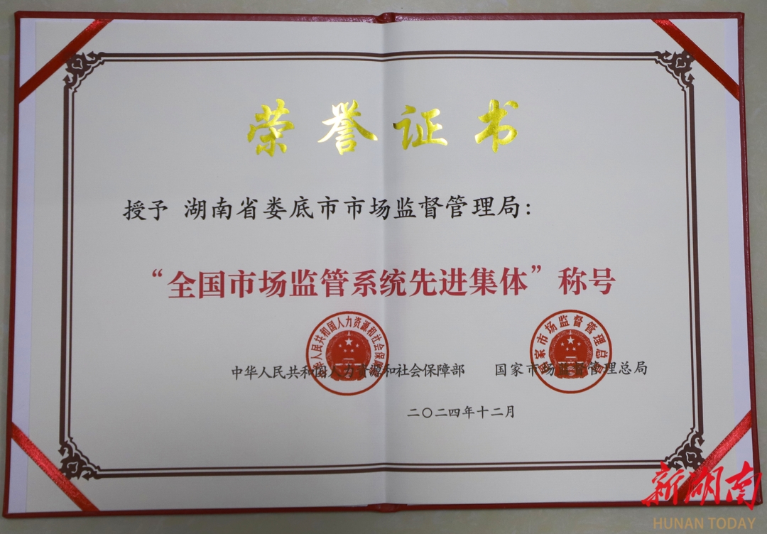 岁序更替,华章日新。2025年,娄底市市场监督管理局在市委、市人大、市政府、市政协的坚强领导下,坚持以习近平新时代中国特色社会主义思想为指导,锚定“三高四新”美好蓝图,以“拙诚”精神深耕市场监管事业,荣膺“全国文明单位”“全国市场监管系统先进集体”等多项国家级荣誉,连续六年获评全市领导班子考核“优秀”等次。