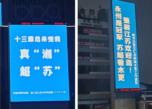 一块广告牌,让江苏十三座城市“集体上头”;一支自嘲“告花子”的球队,让千里之外的城市纷纷回应和支持。2026年“苏超”联赛的正式哨声尚未吹响,一场因足球而生、却又远远超越足球的跨省大互动,已在潇湘大地写下了一个出人意料且温情澎湃的序章。