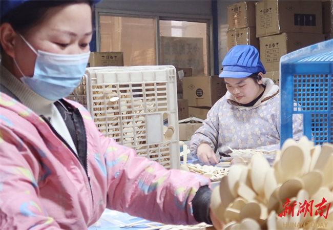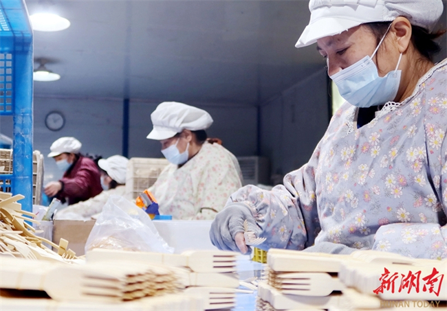 Workers are busy packaging western-style bamboo tableware at an agriculture and forestry technology company in the Chengbu Industrial Development Zone, Shaoyang, on January 9. In recent years, the local authority has leveraged its mao bamboo resources to vigorously develop bamboo deep-processing industry, increasing the income of local farmers. (Photo/Yan Qinlong)