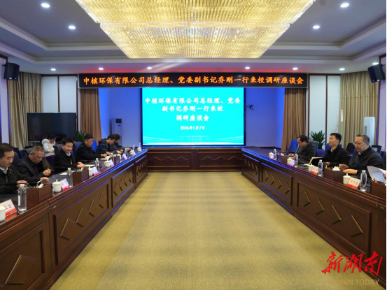 湖南日报·新湖南客户端1月13日讯(通讯员 伍资姿 曹正平)近日,中核环保有限公司来南华大学调研交流。南华大学党委书记唐忠阳,中核环保有限公司党委副书记、总经理乔刚,副总经理何昌盛出席座谈会。南华大学党委委员、副校长周青芝主持座谈会。