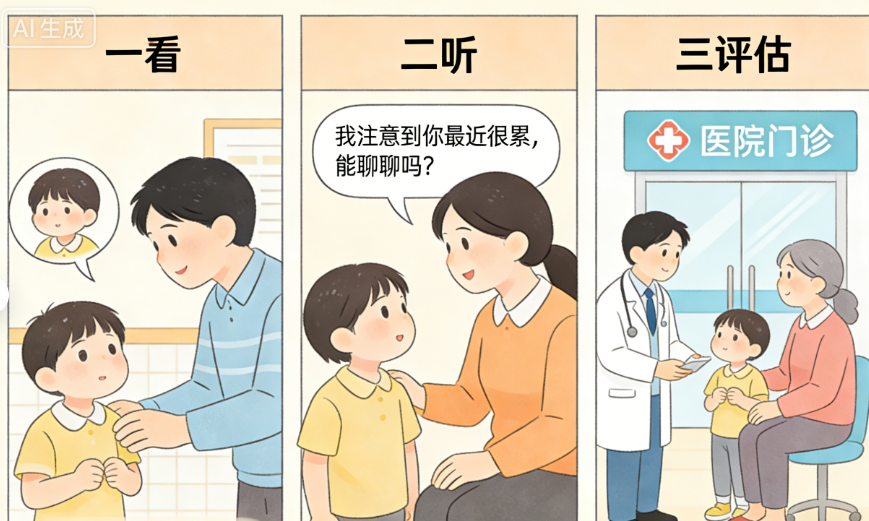 一看:细致观察孩子日常生活,重点关注是否忽视个人卫生、不愿出门交流、出现怪异行为;