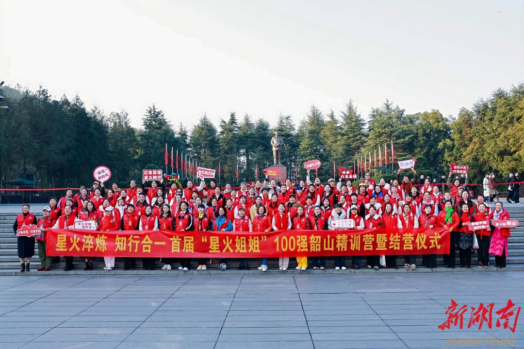 新湖南客户端1月13日讯(通讯员 李屿)星火淬炼,知行合一。 1月10日至11日,由湖南金鹰报刊社有限责任公司、湖南长韶文化旅游发展有限公司、长沙红创文化产业有限公司、湖南星火文化科技有限公司联合组织的“星火姐姐”100强精训营,在“韶山学校星火广场”正式开营!经过火热的海选赛、晋级赛环节,来自长沙各区的100名选手脱颖而出,奔赴红色圣地韶山,开展为期两天的沉浸式集训。
