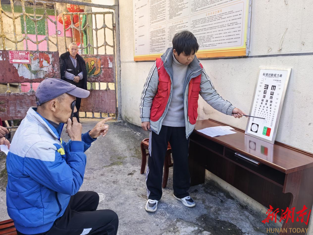 新湖南客户端1月13日讯(通讯员 邓文杰 龙沛旭)1月13日,湘西土家族苗族自治州凤凰县水打田乡水田村暖意融融,州医保局乡村振兴驻村工作队联合湘西飞越公益组织为50岁以上人群开展“心系民生,情暖百姓,乡村振兴送光明”活动,免费测视力、送老花镜,切实解决老年人“视物难”问题。