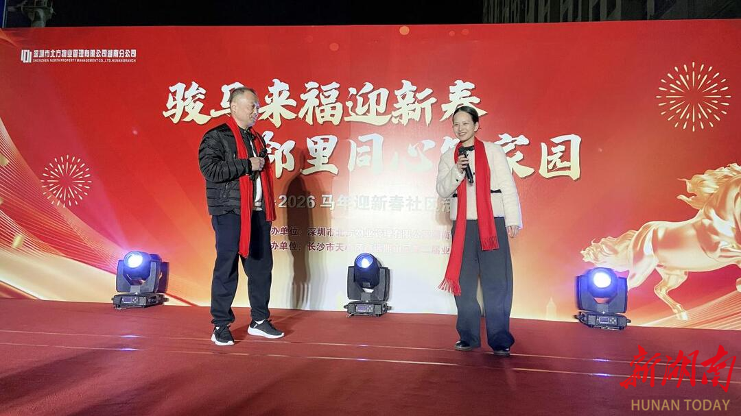 湖南日报·新湖南客户端1月13日讯(通讯员 徐玲)岁末寒冬暖意浓,邻里相聚迎新春。1月10日晚,由天心区青园街道工会联合会指导支持,北方物业鑫远熙山园客户服务中心、小区业委会联合承办的“骏马来福迎新春,邻里同心筑家园”迎春晚会温情启幕。近百名小区职工业主欢聚一堂,在载歌载舞中共话邻里情,在欢声笑语中喜迎马年新春。