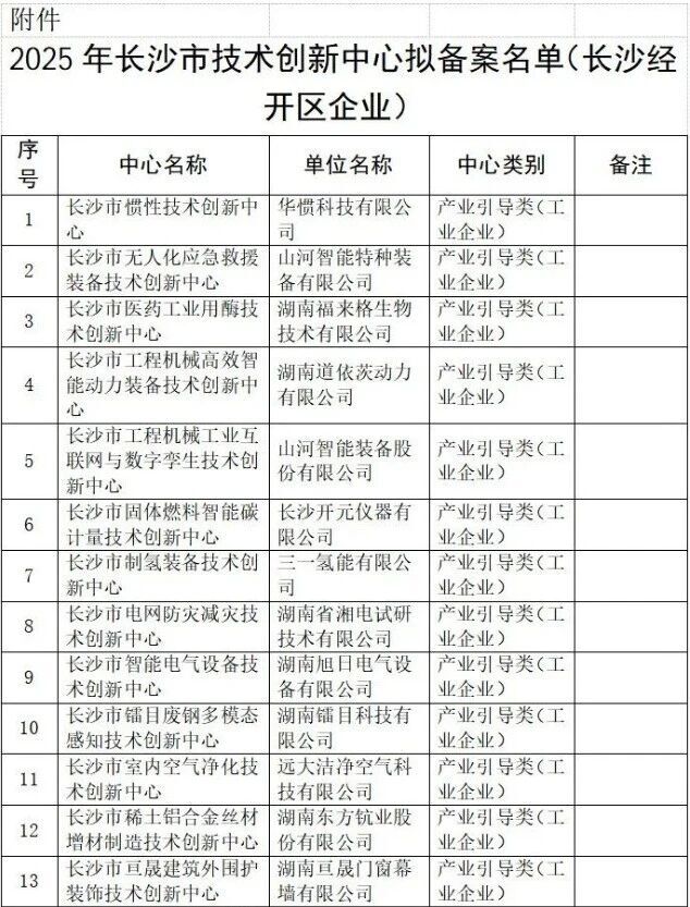 湖南日报·新湖南客户端1月13日讯(记者 王茜 通讯员 周浩然)近日,长沙市科学技术局发布《2025年长沙市技术创新中心拟备案名单》,其中,长沙经开区22家技术创新中心上榜。此次集中入选,彰显出园区企业科技创新的强劲实力,也为长沙经开区培育新质生产力、推动高质量发展提供了关键支撑。