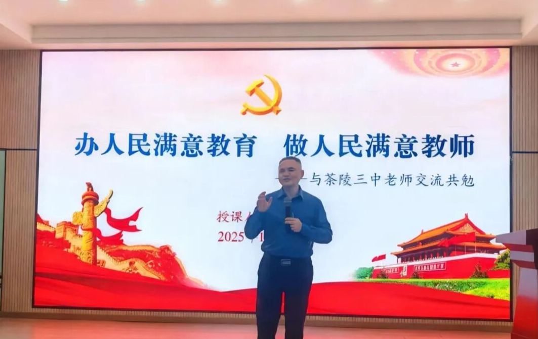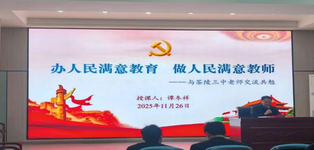 新湖南客户端1月13日讯(通讯员 陈梦琴)近日,茶陵三中特邀株洲市党员教育培训师资库讲师、株洲市理论宣讲人才库成员谭冬祥老师开展专题交流活动。谭老师聚焦“办人民满意教育、做人民满意教师”与“依法执教”两大主题,引导全体教师坚定理想信念、提升专业能力、夯实法治素养、实现教育愿景。活动由该校党总支书记段吉皇同志主持。