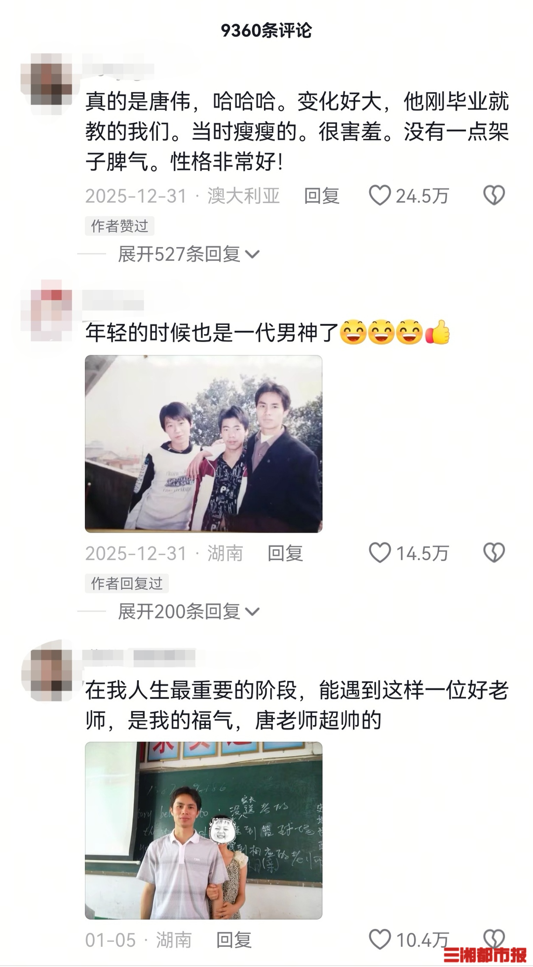 三湘都市报·新湖南客户端1月13日讯(全媒体记者 罗艾敏)“唐伟老师,您还好吗?当初最调皮的学生,现在也开始教书育人了。”“当时家里不让上学,唐老师知道了去我家里做思想工作,非常感谢唐老师。” “还记得您的口头禅‘是不是’,一节课说了94遍”……近日,湖南娄底新化一中某班元旦晚会的一段视频温暖了全网。视频里老师的笑容,仿佛一把钥匙,打开了跨越二十余届学生的记忆闸门。近百万点赞、数千条温情留言,汇聚成一场关于师恩的集体致敬,也让无数网友感慨“在评论区,看见了什么是真正的桃李满天下”。