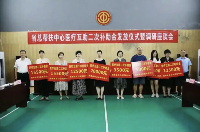 (湖南省总工会对参加互助保障活动的职工发放互助资金。 通讯员 摄)
