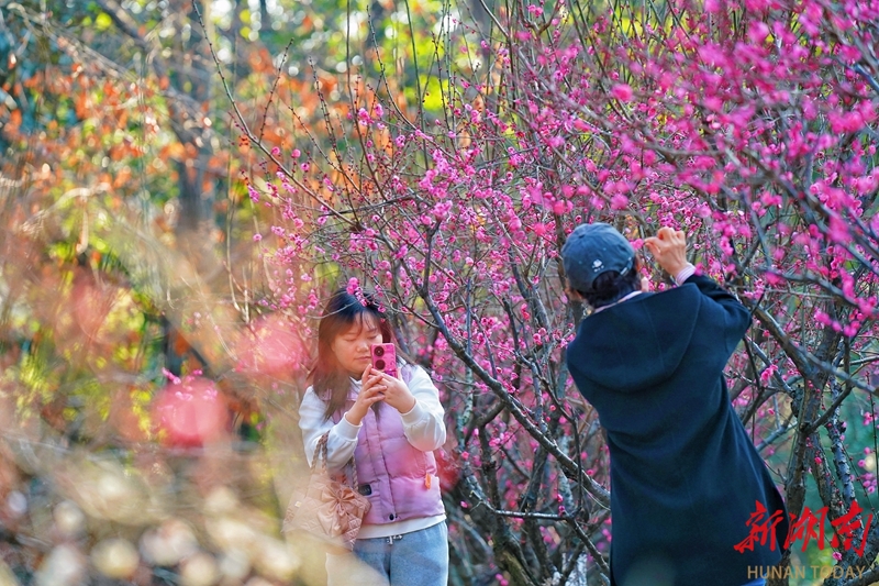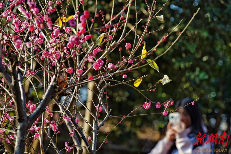 1月13日,冬日暖阳下,市民、游客在省植物园梅园赏花拍照。时下,该园的早樱、梅花、茶花等相继绽放,花朵迎风轻颤,多姿多彩,引得游人纷纷驻足。湖南日报全媒体记者 徐行 通讯员 彭炜 摄影报道
