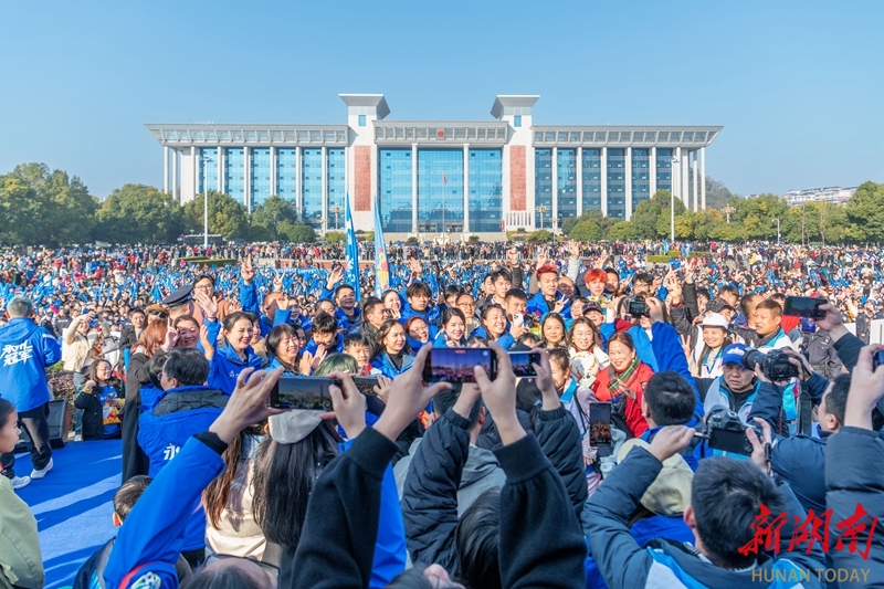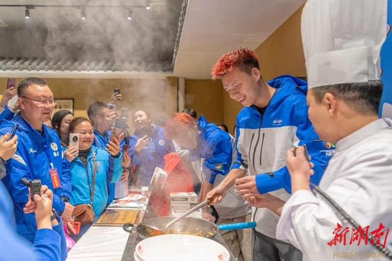 聘任仪式后,四位推广大使与数千名球迷热情互动,并走访了舜皇山国家森林公园、东安鸡文化产业展示馆和吉他产业园,所到之处受到群众热烈欢迎。此次活动旨在借助湘超冠军影响力,深度挖掘东安“武术之乡”“吉他之乡”“美食东安”文化资源,立体化展示东安魅力,推动“体育+文旅+产业”融合发展。蔡小平 摄(湖南图片库)
