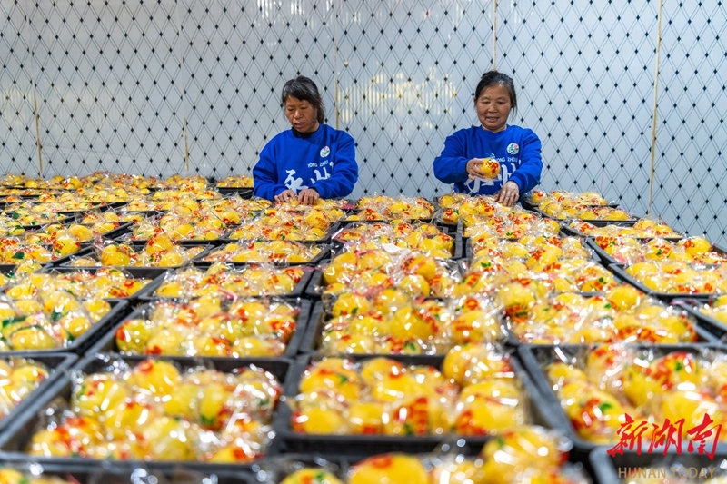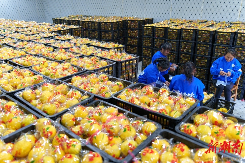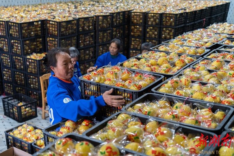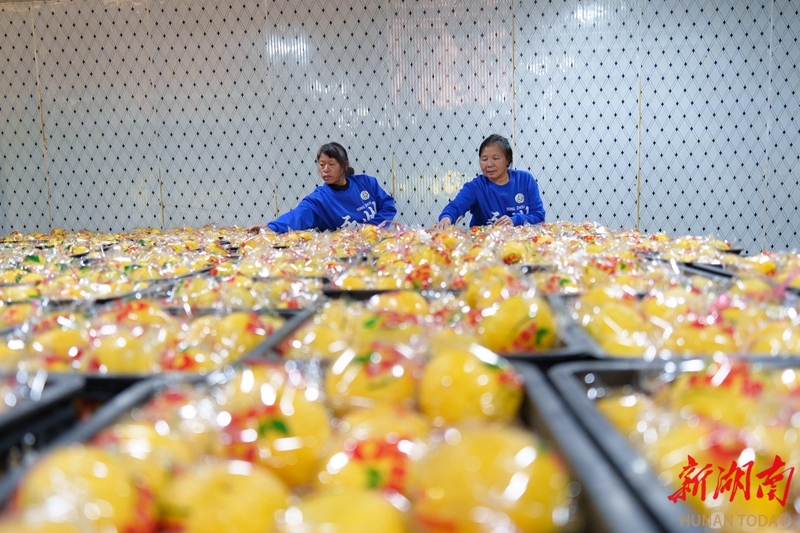 1月13日,永州市冷水滩区上岭桥镇三大桥村,村民在打包黄金贡柚。近年来,当地深挖生态资源潜力,通过“合作社+基地+农户”的模式,因地制宜发展柑橘产业,并积极推动产业绿色化、规模化、品牌化发展,带动农户增收。雷中祥 蒋彦斌 摄影报道(湖南图片库)
