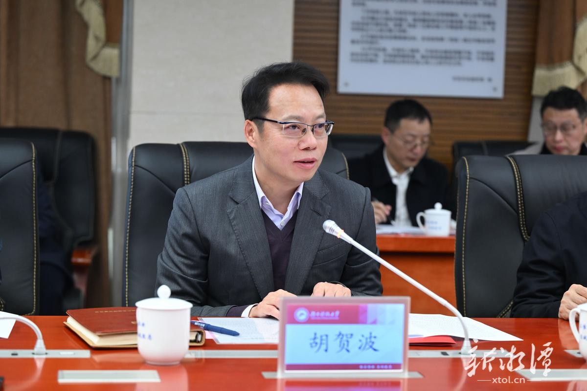 胡贺波代表湘潭市委、市政府感谢湖南科技大学对湘潭发展作出的重要贡献。他说,学校始终扎根伟人故里,不断攀高向新图强,已成为推动湘潭高质量发展的重要力量,是我们的宝贵财富。当前,湘潭正奋力奔跑在高质量发展的光明大道上。希望校地双方以此次项目签约为契机,充分发挥长株潭一体化和产教融合两大独特优势,聚焦科技成果转化、人才共引共享、校友回乡等重点深化拓展合作,推动创新链、产业链、资金链、人才链深度融合,加快构建“教育—科技—人才”和“科技—产业—金融”两个高水平循环。市委、市政府将持续提供优质服务和有力保障,全力支持湖南科技大学高质量发展,携手打造校地深度融合、共生共荣的新标杆。