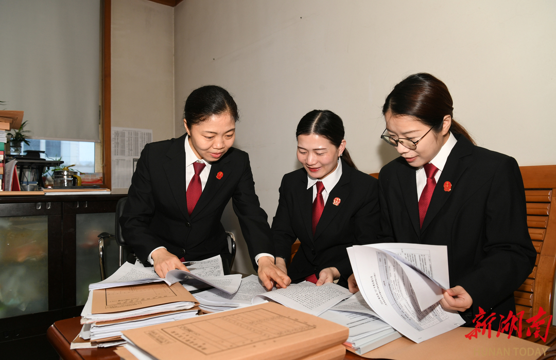 1月5日,刘雅静(左一)和同事在梳理案情。湖南日报全媒体记者 田超 摄